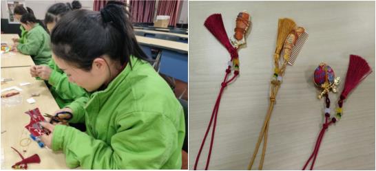 工会特别邀请了宋锦技艺领域的专业老师,为在场教职工带来了一场精彩的宋锦文化讲座,深入浅出地讲解了宋锦的悠久历史、艺术特色及其深厚的文化价值。在随后的技艺体验中,在老师的带领下,亲手尝试制作宋锦车挂等手工艺品。活动过程中,大家兴致盎然,不同的车挂图案,不同的寓意。在感受非遗技艺独特魅力的同时,也将在协作中增进的同事情谊编织进这精美的方寸之间,现场气氛温馨而热烈,充满了欢声笑语。
